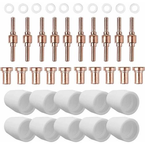 “40 PZ: Ugello da taglio standard da 10 pezzi, elettrodo al plasma da 10 pezzi, cappuccio per ugello da 10 pezzi/ugelli in ceramica, anelli in ceramica da 10 pezzi Gli ugelli e gli elettrodi sono realizzati in rame di alta qualità. Il kit di elettrodi per ugelli viene utilizzato per la pistola da taglio al plasma PT31 LG-40. Molti ugelli ed elettrodi sono di ricambio, convenienti per sostituire quello rotto durante il processo di taglio, terminare il progetto di taglio senza intoppi Durevole e lunga durata degli ugelli, che hanno una velocità di taglio elevata e buona qualità di taglioGli ugelli sono considerati materiali di consumo per il taglio al plasma, sono essenziali per il progetto di taglio al plasma.Colore: oro rosaPeso: 350 g”