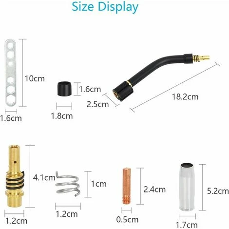 24 accessori per abbigliamento da saldatura: inclusi 10 contatti M6 1.2, 5 ugelli gas conici, 2 portacontatti, 3 molle di tenuta, 2 manicotti isolanti, 1 chiave inglese, 1 collare di cigno, prepariamo con un set completo di strumenti di saldatura per te, puoi assemblarli. Mettiti al lavoro!