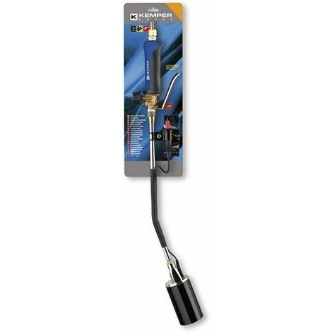 Cannello per asfaltista, rubinetto in ottone con leva economizzatrice, accensione piezo, prolunga 35 cm., corpo bruciatore in alluminio cromato, bruciatore ? 60 mm.