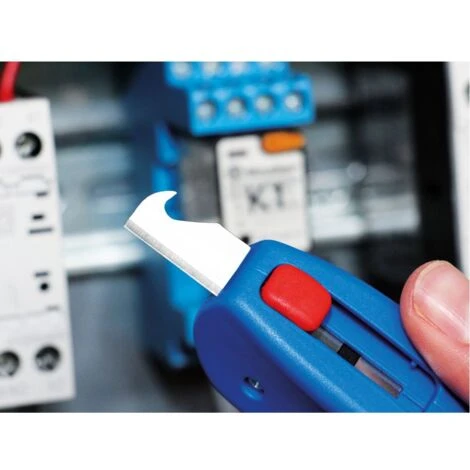 I coltelli per cavi Weicon consentono rivestimenti precisi, veloci e sicuri di tutti i cavi rotondi comuni. La famiglia dei prodotti dei coltelli per cavi include vari tipi che hanno diverse funzioni aggiuntive e corrispondono quindi alle esigenze individuali degli utenti. Il coltello da cavo S 4-28 consente rivestimenti precisi, veloci e sicuri di tutti i cavi rotondi comuni con un diametro tra 4 e 28 millimetri. Con l’aiuto di una ruota di parcheggio nell’alloggiamento, la profondità di taglio della lama di taglio può essere regolata in modo continuo. Ciò impedisce il danno ai conduttori interni. La lama di taglio è integrata in modo improprio nell’alloggiamento e consente quindi la conversione automatica del round alla sezione longitudinale. Inoltre, una lama a gancio è stata integrata nel S 4-28, che può essere incassata nell’alloggiamento. In entrambe le posizioni, la lama è bloccabile. Ciò porta a una significativa riduzione del rischio di lesioni, portando le lame fisse.