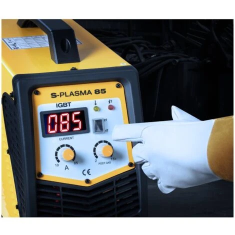 La tagliatrice al plasma S-PLASMA 85CNC di Stamos Germany è stata prettamente concepita per essere impiegata a livello professionale unitamente a macchinari con funzionalitá CNC, ma si presta ottimamente per essere utilizzata anche a mano. Si tratta di un dispositivo che necessita di un’alimentazione di corrente trifase pari a 380 V. La tagliatrice al plasma S-PLASMA 85CNC colpisce per le sue caratteristiche uniche quali per esempio un alloggiamento verniciato a polvere, un ottimo rapporto qualitá-prezzo e qualitá garantita di prima classe. La protezione da sovraccarico termico permette di effettuare tutte le operazioni in piena sicurezza e con un alto grado di affidabilitá. La tagliatrice al plasma utilizza un valore regolabile di potenza di taglio che si estende da 20 a 85 ampère. In questo modo anche i materiali con uno spessore fino a 27 millimetri possono essere lavorati senza alcuna difficoltá. La tagliatrice al plasma S-PLASMA 85 CNC di Stamos Germany é dotata dii un Transistor a giunzione bipolare di ultima generazione (Insulated Gate Bipolar Transistor = IGBT), che dona al dispositivo una elevata resistenza ai cortocircuiti, in quanto l’IGBT limita la carica elettrica.