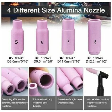 Fornisce buone prestazioni di saldatura: Consumabili TIG Il kit TIG è realizzato in materiale di alta qualità, forte e resistente alle alte temperature, durevole.Il kit TIG consumabili TIG è conveniente per sostituire quello rotto Durante il processo di taglio, terminare il progetto di taglio senza intoppi. Migliori prestazioni e affidabilità del tuo bruciatore.