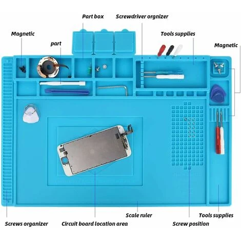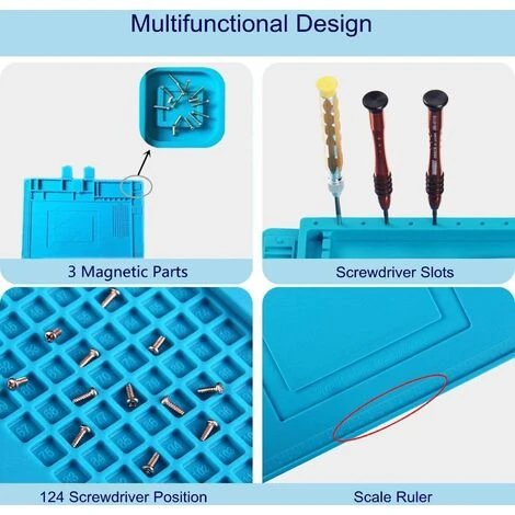 [Tappetino di riparazione multifunzionale] – Il tappetino di riparazione può essere utilizzato in molti modi come tappetino da tavolo per stazioni di saldatura, ad esempio: assemblaggio elettronico o riparazione elettronica e PCB. Fissa in modo telefono, orologio, occhiali, laptop, computer, fotocamera.℃ evitare bruciature indesiderate, inoltre, il tappetino di riparazione elettronico ha un righello (0 ~ 36 cm) e 124 viti e 3 superfici magnetiche per riporre chip IC e sicuro piccole festa, migliorando l’efficienza lavorativa, pulita e ordinata. Il tappetino magnetico per saldatura può essere piegato ed è facile da pulire con acqua e sapone o anche alcol. di ustioni indesiderate e fornisce una superficie di lavoro piacevolmente strutturata.
