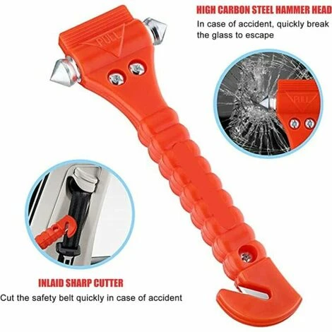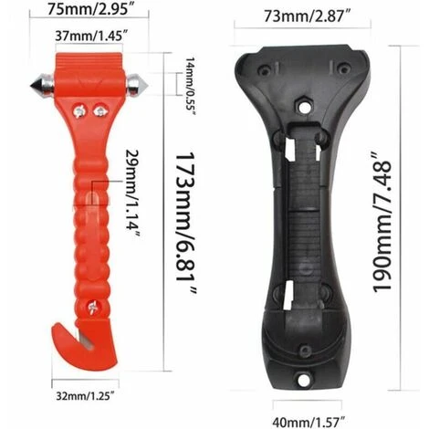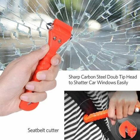 Strumento di fuga di emergenza 2 in 1: fornisce un martello per finestrini e un taglia cinture di sicurezza. Punte a doppia faccia in acciaio al tungsteno con bordo duro per rompere rapidamente le finestre in caso di emergenza. La coda ha una lama per tagliare la cintura di sicurezza.