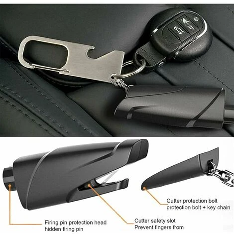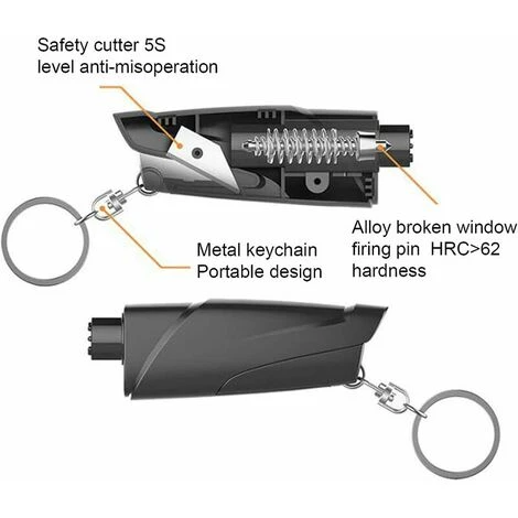 Martello di sicurezza 3 in 1: Striker : Quando la porta non può essere aperta. Puntare il rompivetro sul finestrino dell’auto e premere con decisione, il finestrino dell’auto si ITantuma all’istante. taglierina: In una situazione di emergenza in cui la cintura di sicurezza non può essere rimossa, la cintura di sicurezza può essere tagliata immediatamente. portachiavi: E ha anche un portachiavi, che può essere fissato con la chiave dell’auto e la borsa e portato con te.