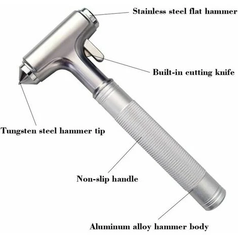 Dimensioni [Aspetto]: circa 17*7,5 cm, tutto in metallo. Include un manico antiscivolo ergonomico allungato, un martello in metallo a punta solida, un martello piatto e un coltello affilato. Il design della lama nascosta ti impedisce di ferirti accidentalmente.
