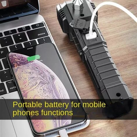 Utilizzo: illuminazione, rottura vetri, ricarica, taglio sicurezza cinture auto