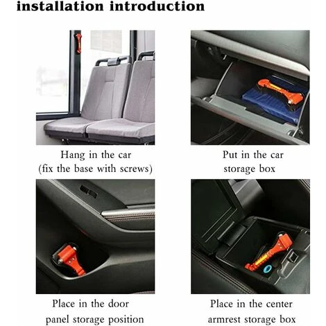 Rompivetri e taglierina cinture di sicurezza 2 in 1. Viene utilizzato il tagliacinture per tagliare la cintura di sicurezza della vettura per liberare i passeggeri intrappolati nel sedile. Viene utilizzato il rompivetro per rompere la finestra sinistra o destra per aiutarti scappare dall’auto. durevole, di qualità.