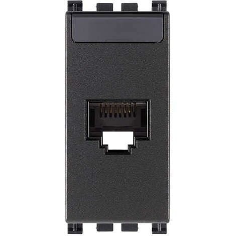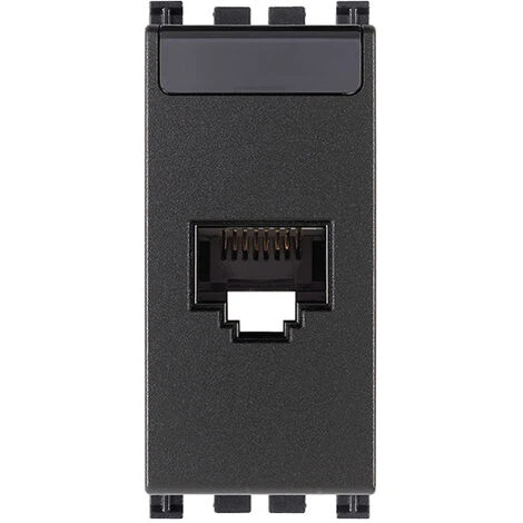 Presa RJ45 con connettore Netsafe Cat. 6, non schermata, cablaggio universale T568A/B, 8 contatti, morsetti ad incisione d’isolante senza utilizzo di utensile, grigio.