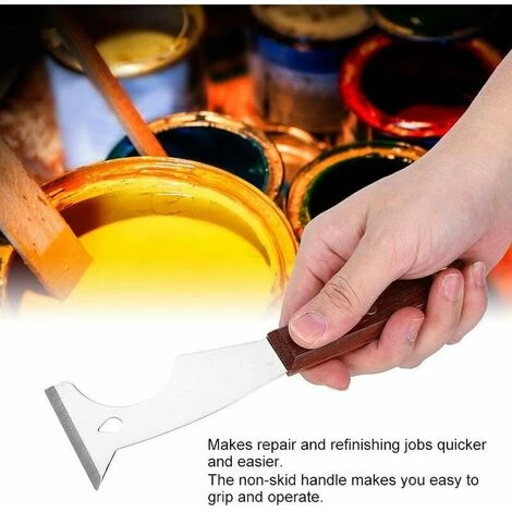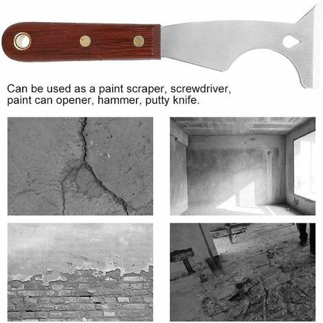 Può essere utilizzato come raschietto per vernice, cacciavite, apriscatole, martello, sverniciatore, spatola.