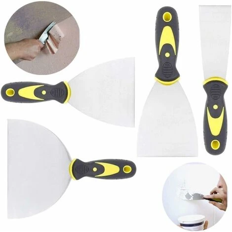 La confezione include 4 raschietti metallici che possono essere utilizzati per rimuovere carta, vernice, ecc. mattoni, legno, pietra, pareti interne, ecc., nonché spatole.