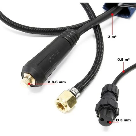 Il set è progettato per un facile e rapido collegamento alle comuni saldatrici con corrente di lavoro fino a 180 ampere.