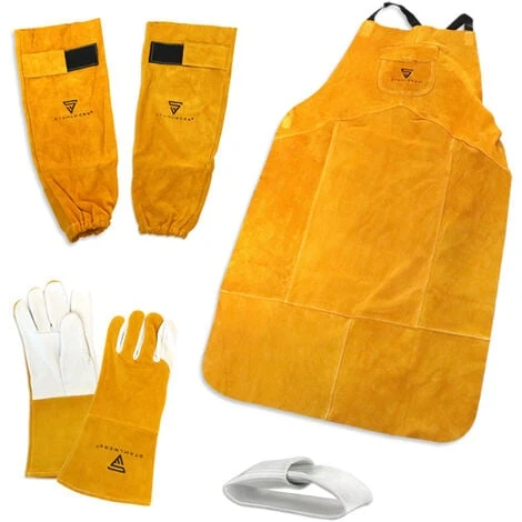 STAHLWERK Set di abbigliamento protettivo – grembiule da saldatura + guanti da saldatura + protezione per gli schizzi del braccio + dita TIG
