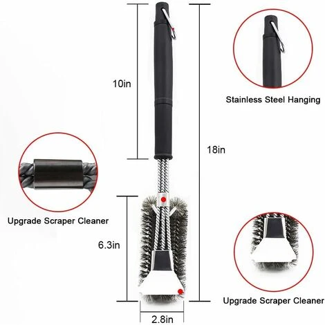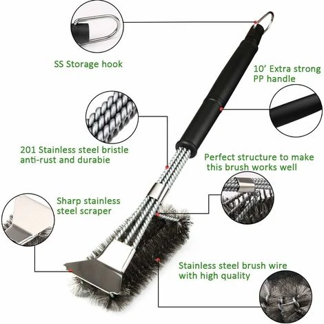 Spazzole 3 in 1: puoi pulire la stessa area 5 volte più velocemente rispetto alla vecchia spazzola. È anche facile pulire la parte superiore e inferiore di tutte le griglie. Mantieni la griglia pulita e il cibo al sicuro con questo pennello. È dotato di un filo in acciaio inossidabile per rimuovere il grasso e le particelle di cibo dalla griglia del barbecue, facilitando allo stesso tempo l’applicazione della pressione desiderata.Pulizia più efficiente: pulisci la stessa area 5 volte più velocemente rispetto a un tradizionale spazzola per barbecue. Abbastanza grande da pulire la parte superiore, inferiore e laterale di tutte le griglie. Perfetto per tutte le griglie: gas, carbone, infrarossi, ecc.