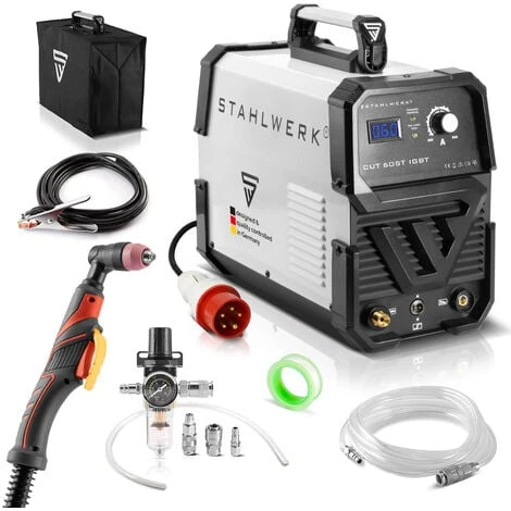Taglierina al plasma STAHLWERK CUT 60 ST IGBT con potenza di taglio di 60 Ampere, fino a 24 mm, adatta per lamiere verniciate e ruggine superficiale, 7 anni di garanzia del produttore.