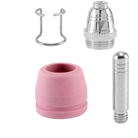 Set di 30 pezzi: 10 ugelli plasma, 10 elettrodi, 5 cappucci in ceramica, 5 distanziatori. Adatto a tutte le nostre unità e a tutte le torce al plasma P-60 di altri produttori.