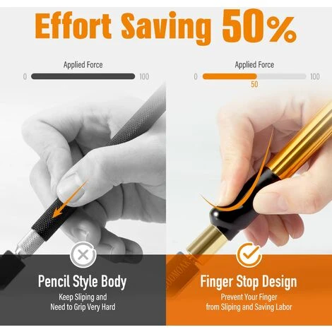Design leggero a forma di matita: progettato per comfort, durata e prestazioni. Questo tagliavetro di livello industriale ha un design a matita per garantire comfort e prestazioni all’utente. Utilizzabile su una varietà di materiali: questo tagliavetro può essere applicato su vetro, diamanti e minerali, rendendolo uno strumento ideale per i lavori domestici e il taglio. : Il tagliavetro è autolubrificante, quando viene applicata la pressione un sistema automatico di erogazione dell’olio mantiene la ruota lubrificata ogni volta che si taglia. Comodo e portatile: l’impugnatura in metallo è facile da impugnare e riduce l’affaticamento del polso. Un design leggero e compatto significa che questo strumento per il taglio del vetro è facile da trasportare.