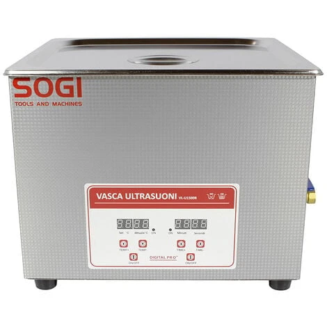 La vasca di lavaggio a ultrasuoni SOGI VL-U1500R è realizzata interamente in acciao inox per contrastare la corrosione dei solventi o liquidi sgrassanti utilizzati durante il lavaggio dei pezzi. É inoltre dotata di riscaldamento con un massimo di 80° Celsius. Predisposta di ventola di raffreddamneto per il sistema di alimentazione.
