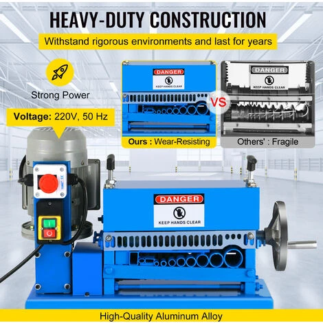- Ampio Utilizzo: questa macchina è ideale per qualsiasi filo duro o filo morbido, può essere facilmente spellato utilizzando questo modello. Tale riciclatore di filo di rame staccherà l’isolamento in plastica e gomma dal filo di scarto non danneggiato, un must per il riciclaggio del filo di rame.